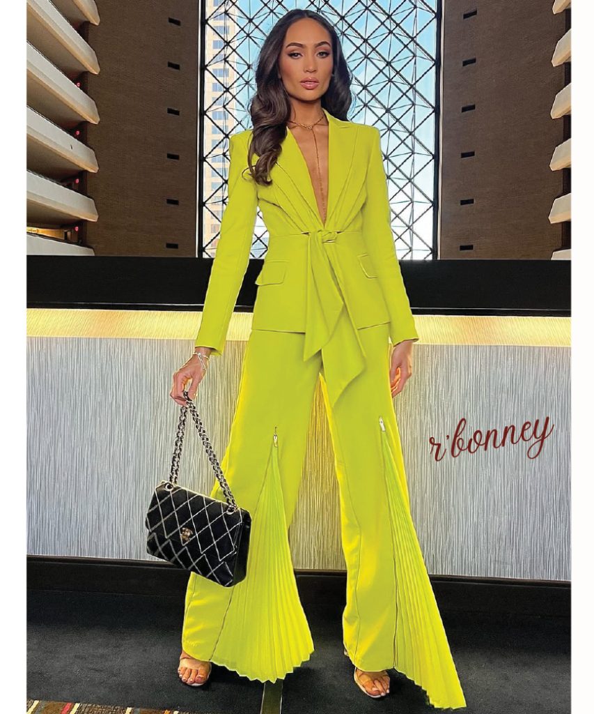 Go for sophisticated daywear like a midi dress, elegant jumpsuit, or blouse with a statement skirt. Aim for polished and approachable looks that photograph well.